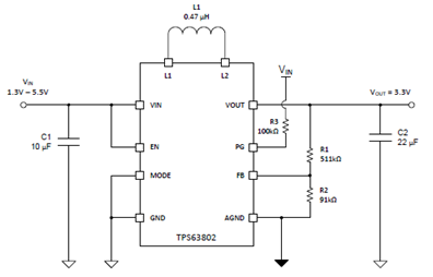 图2.TPS63802 3.3Vout应用电路图